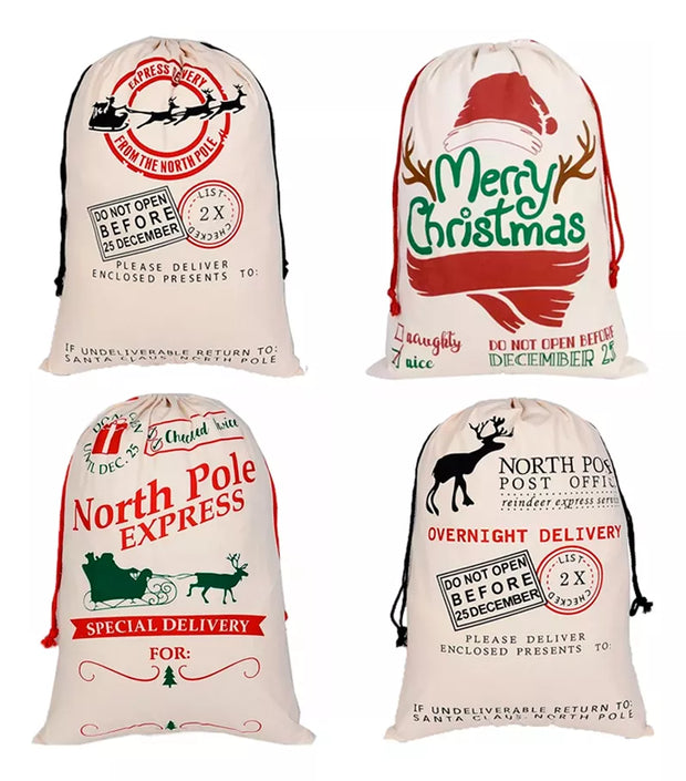4 Costales Jumbo Navideños Gruesos Para Regalos o Juguetes